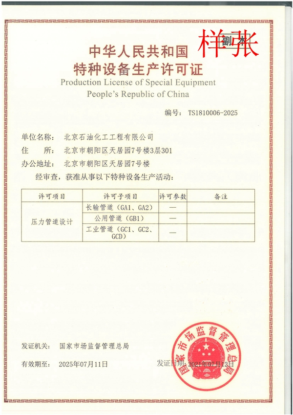 特種設備設計許可證(壓力管道)