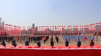 烏海市市委常委、統戰部部長鄧凱,烏海市政府副市長李春曉出席開工儀式,烏達區委常委、副區長樊力作開工動員講話。烏達區副區長云澤人,內蒙古東源科技有限公司董事長俞海明、總經理朱慶和,陜建集團黨委常委、董事高建成,北油工程公司副總經理劉戈,江蘇科華建設工程有限公司總經理虞國軍同時出席了開工儀式。