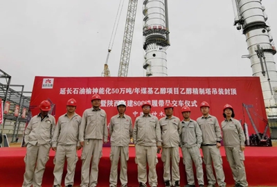 榆神能化煤基乙醇項目乙醇精制塔封頂