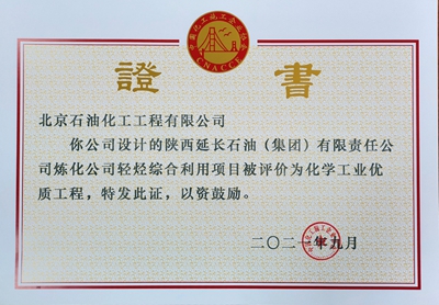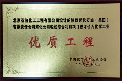 近日,由北京石油化工工程有限公司設計的延長石油集團煉化公司輕烴綜合利用項目喜獲中國化工施工企業協會化學工業優質工程獎。