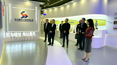 北油工程訪問團首先參觀了華山國際一樓的展覽館,通過工作人員的講解,對華山國際的歷史沿革、重點業績、海外分支機構等方面建立了初步的了解和認識。在隨后的座談會上,雙方領導就各自公司的基本情況、海外市場開發、主要業務領域等內容開展了進一步的深入交流,并探討出了借勢陜建、抱團出海、優勢互補、合作共贏的工作思路。