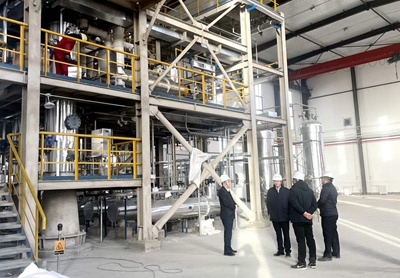調研座談會前,許緘濤、田偉一行來到生產區和中央控制室進行了參觀交流,深入了解了公司生產運行、產品特性、主要裝置性能等情況。