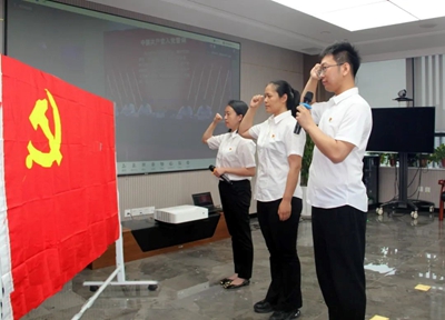 大會在莊嚴的國歌聲中拉開帷幕,全體參會干部、職工著裝整齊、昂首肅立。面對鮮紅的黨旗,預備黨員在公司黨委副書記、總經理田偉同志的領誓下,莊嚴宣誓,擲地有聲地表達了對黨的無限忠誠和崇高敬意。