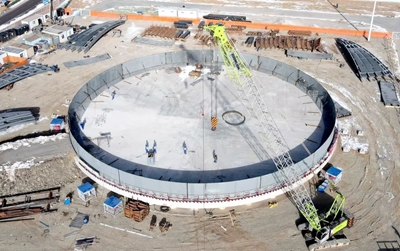 目前,隨著項目LNG儲罐完成2臺外罐壁板第一圈的組對工作,標(biāo)志著項目安裝工作全面展開。近期施工現(xiàn)場氣溫已跌至零下20攝氏度,低溫天氣給工程施工帶來一定影響,施工人員克服低溫不利條件,正在搶抓春節(jié)前最后的施工期,以推進工程建設(shè)。