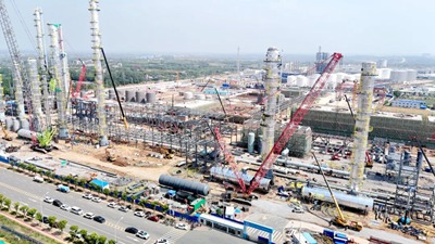 作為項目核心參建方,北油工程負責全場總體院及基礎設計、總承包20萬噸/年乙醇裝置(含電子級乙醇)工程。目前,乙醇裝置總體進度已完成56%,大件設備吊裝進度達60%。項目充分利用荊門化工園區(qū)盈德氣體提供的甲醇、CO等原料資源,有效延伸碳一化工產業(yè)鏈,對荊門打造千億級鋰電產業(yè)集群具有戰(zhàn)略意義。