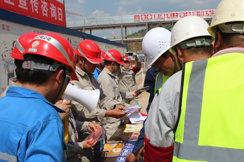 活動以懸掛橫幅、設(shè)立咨詢臺、擺放宣傳展板、發(fā)放宣傳資料等各種靈活多樣的形式開展。活動現(xiàn)場,項目部工作人員積極向廣大參建人員傳播安全生產(chǎn)理念,普及安全生產(chǎn)相關(guān)政策法律法規(guī),安全科普常識、應(yīng)急處置和自救互救方法等,著力提高廣大參建人員的安全意識、防災(zāi)避險和應(yīng)急處置能力。同時,項目HSE領(lǐng)導(dǎo)重點對職業(yè)安全健康、現(xiàn)場安全管理知識以及“安全生產(chǎn)年”等方面進(jìn)行了講解。