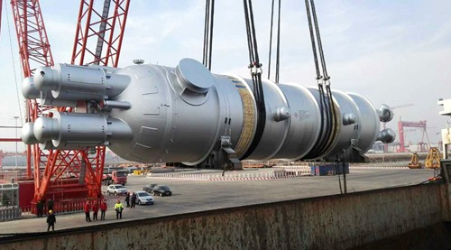 世界最大產(chǎn)能甲醇合成塔運(yùn)抵延能化項(xiàng)目現(xiàn)場